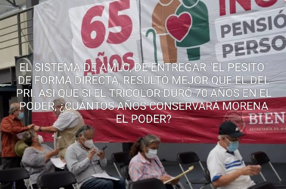El PRI con tortas y despensas de frijoles con gorgojos, duró 70 años en el poder; morena con sus programas sociales, donde entrega “el pesito” de forma directa a los beneficiarios, se me hace que va a dobletear al PRI; pero si no es así, la 4T ya está preparada para dar el brinco al autoritarismo; al menos que combata la corrupción intestinal que actualmente padece; le urge, como al PAN, desechar a los parásitos del PRI, que se le incrustaron desde el 2018.
