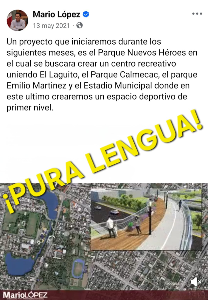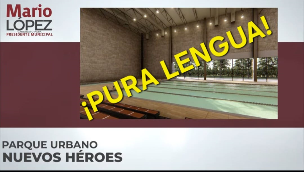 Un año después, “La Borrega Corrupta”, apareció con soluciones: reconstrucción inmediata del puente y un megaproyecto para transformar el parque. Anunció ciclovía, gimnasio, clínica deportiva, alberca semiolímpica y, por si fuera poco, propuso rebautizar el parque como “Parque Nuevos Héroes”, porque al parecer, el único héroe que merecía aplausos era él.
