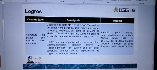 Después, tocó el turno de comparecer al Ing. Rodolfo Ramos Pérez, Jefe de Servicios de Desarrollo de Personal, quien dio un informe de los resultados del proceso de reclutamiento de médicos especialistas (draft) 2026; a esto se sumó la comparecencia del Lic. Sergio Guadalupe Cantú Rivera, Titular de la Jefatura de Servicios Jurídicos.